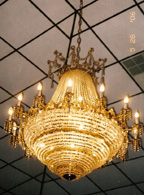 The main ballroom is constructed with a dome-shaped ceiling. The room's crowing glory - the crystal chandelier - hangs from its center.